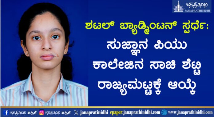 ಶಟಲ್ ಬ್ಯಾಡ್ಮಿಂಟನ್ ಸ್ಪರ್ಧೆ: ಸುಜ್ಞಾನ ಪಿಯು ಕಾಲೇಜಿನ ಸಾಚಿ ಶೆಟ್ಟಿ ರಾಜ್ಯಮಟ್ಟಕ್ಕೆ‌ ಆಯ್ಕೆ