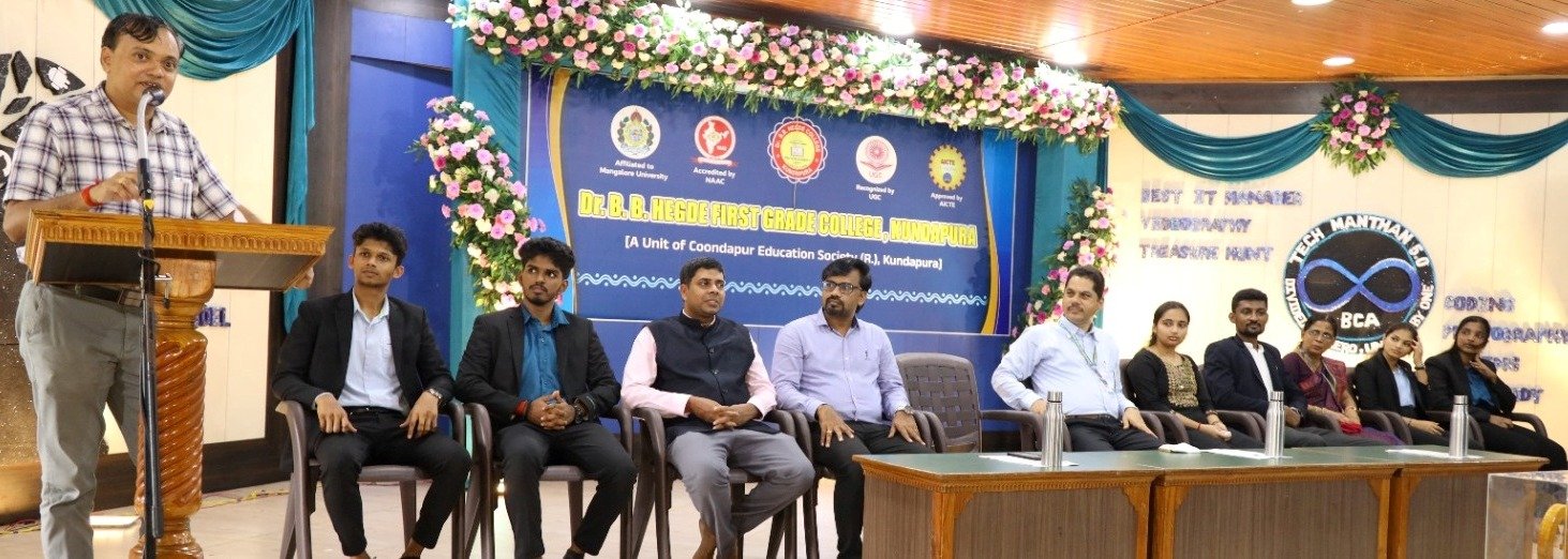 ಕುಂದಾಪುರ: ಡಾ| ಬಿ.ಬಿ. ಹೆಗ್ಡೆ ಪ್ರಥಮ ದರ್ಜೆ ಕಾಲೇಜಿನ ಗಣಕ ವಿಜ್ಞಾನ ವಿಭಾಗದ ಆಶ್ರಯದಲ್ಲಿ ಆಗಸ್ಟ್ ೩೦ರಂದು ಕಾಲೇಜಿನ ಮೂಕಾಂಬಿಕಾ ಸಭಾಂಗಣದಲ್ಲಿ ನಡೆದ ಅಂತರ್ ತರಗತಿ ಐಟಿ ಫೆಸ್ಟ್ “ಟೆಕ್ ಮಂಥನ್ 5.0” ಕಾರ್ಯಕ್ರಮದ ಸಮಾರೋಪ ಸಮಾರಂಭದಲ್ಲಿ ವಿವಿಧ ಸ್ಪರ್ಧೆಗಳ ವಿಜೇತರನ್ನು ಪುರಸ್ಕರಿಸಲಾಯಿತು.
