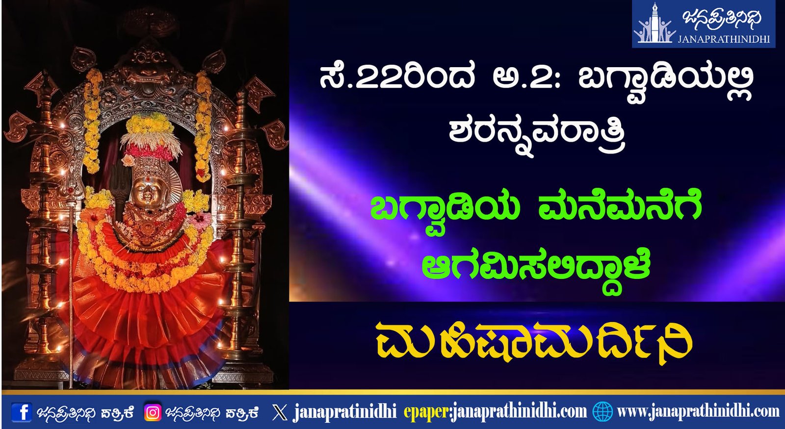 ಸೆ.22ರಿಂದ ಅ.2: ಬಗ್ವಾಡಿಯಲ್ಲಿ ಶರನ್ನವರಾತ್ರಿ | ‘ಮನೆಮನೆಗೆ ಮಹಿಷಾಮರ್ದಿನಿ’