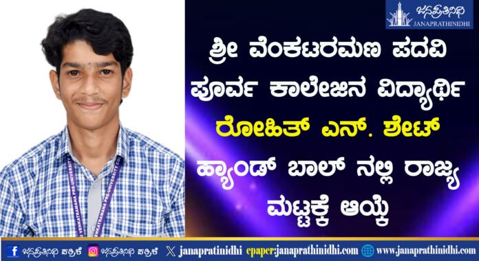 ಶ್ರೀ ವೆಂಕಟರಮಣ ಪದವಿ ಪೂರ್ವ ಕಾಲೇಜಿನ ವಿದ್ಯಾರ್ಥಿ ರೋಹಿತ್ ಎನ್. ಶೇಟ್ ಹ್ಯಾಂಡ್ ಬಾಲ್ ನಲ್ಲಿ ರಾಜ್ಯ ಮಟ್ಟಕ್ಕೆ ಆಯ್ಕೆ