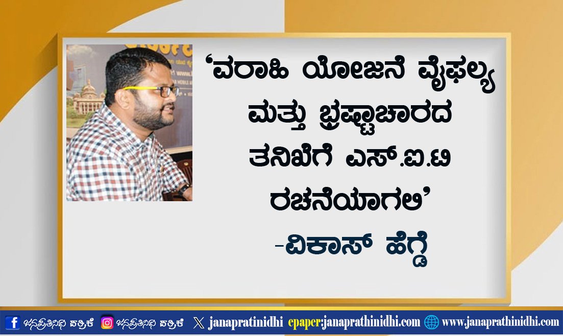 ವರಾಹಿ ಯೋಜನೆ ವೈಫಲ್ಯ ಮತ್ತು ಭ್ರಷ್ಟಾಚಾರದ ತನಿಖೆಗೆ ಎಸ್.ಐ.ಟಿ ರಚನೆಯಾಗಲಿ-ವಿಕಾಸ್ ಹೆಗ್ಡೆ
