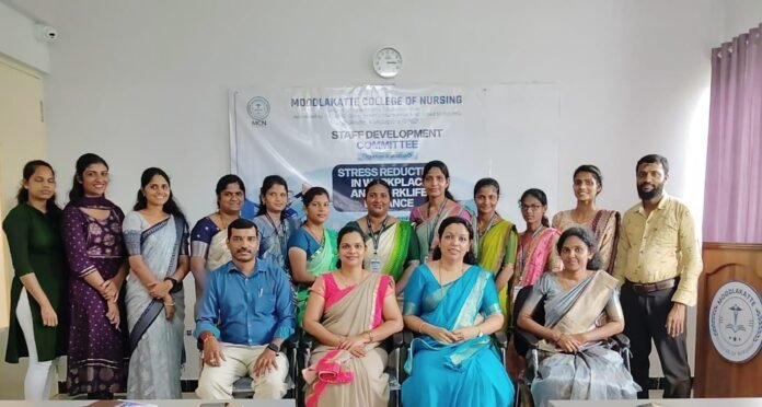 kundapura: ಮೂಡ್ಲಕಟ್ಟೆ ನರ್ಸಿಂಗ್ ಕಾಲೇಜಿನ ಸಿಬ್ಬಂದಿ ಅಭಿವೃದ್ಧಿ ಸಮಿತಿ ವತಿಯಿಂದ “ಕಾರ್ಯಕ್ಷೇತ್ರದಲ್ಲಿ ಒತ್ತಡ ನಿವಾರಣೆ ಮತ್ತು ಕೆಲಸ-ಜೀವನ ಸಮತೋಲನ” ಎಂಬ ವಿಷಯದ ಮೇಲೆ ವಿಶೇಷ  ಅತಿಥಿ ಉಪನ್ಯಾಸ ಕಾರ್ಯಕ್ರಮವನ್ನು ಕಾಲೇಜು ಆವರಣದಲ್ಲಿ ಆಯೋಜಿಸಲಾಯಿತು.