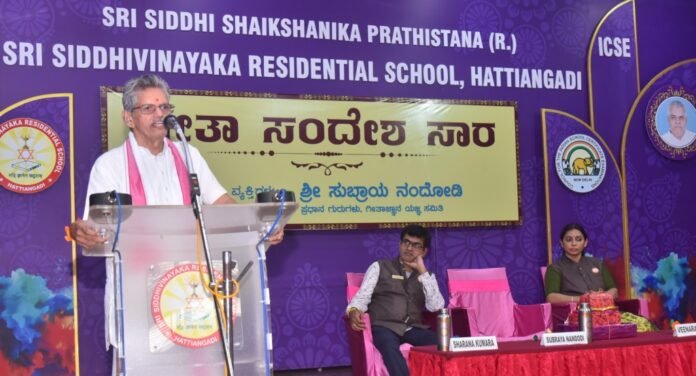 ಹಟ್ಟಿ‌ಅಂಗಡಿ: ಶ್ರೀ ಸಿದ್ಧಿವಿನಾಯಕ ವಸತಿಶಾಲೆ, ಹಟ್ಟಿ‌ಅಂಗಡಿಯಲ್ಲಿ ದಿನಾಂಕ ೨೯-೦೯-೨೦೨೫ ರಂದು ವಿದ್ಯಾರ್ಥಿಗಳಿಗೆ ಭಗವದ್ಗೀತೆಯ ಸಂದೇಶಗಳ ಪರಿಚಯಕ್ಕಾಗಿ ’ಗೀತಾ ಸಂದೇಶ ಸಾರ’ ಎಂಬ ಕಾರ್ಯಕ್ರಮವನ್ನು ಆಯೋಜಿಸಲಾಗಿತ್ತು.