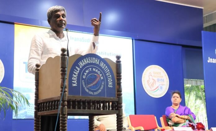 ಕಾರ್ಕಳ ಜ್ಞಾನಸುಧಾ ಶಿಕ್ಷಣ ಸಂಸ್ಥೆಗಳ ಆವರಣದಲ್ಲಿ ನಡೆದ ವಂದೇ ಮಾತರಂ -೧೫೦ ಐತಿಹಾಸಿಕ ಕಾರ್ಯಕ್ರಮದ‌ಅಧ್ಯಕ್ಷತೆ ವಹಿಸಿ ಮಾತನಾಡಿದರು.