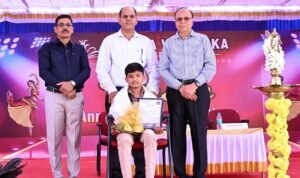 ಕಾರ್ಯಕ್ರಮದಲ್ಲಿ ರಾಜ್ಯ ಮಟ್ಟದ ಚಿತ್ರ ಕಲಾ ಸ್ಪರ್ದೆಯಲ್ಲಿ ಪ್ರಥಮ ಹಾಗೂ ವಿವಿಧ ಚಿತ್ರ ಕಲಾ ಸ್ಪರ್ಧೆಗಳಲ್ಲಿ ಬಹುಮಾನಗಳನ್ನು ಪಡೆದು ಸಾಧನೆ ಮಾಡಿದ ೮ನೇ ತರಗತಿ ವಿದ್ಯಾರ್ಥಿ ಯಕ್ಷತ್ ಶೆಟ್ಟಿ ಇವರನ್ನು ಫಲ ಪುಷ್ಪ ಹಾಗೂ ಸ್ಮರಣಿಕೆಯನ್ನು ನೀಡಿ ಸನ್ಮಾನಿಸಲಾಯಿತು.
