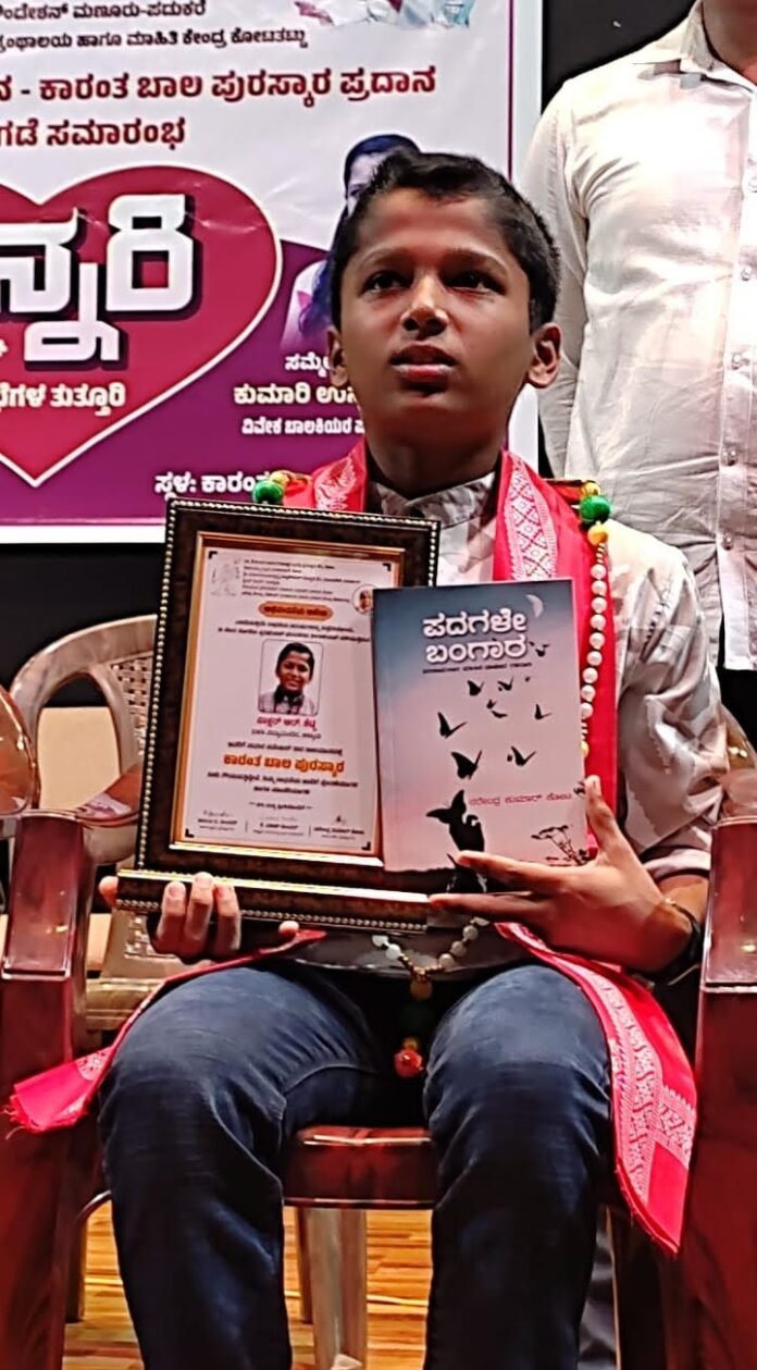 ಕೋಟ: ಕೋಟ ಡಾ. ಶಿವರಾಮ ಕಾರಂತ ಹುಟ್ಟೂರ ಪ್ರಶಸ್ತಿ ಪ್ರತಿಷ್ಠಾನ, ಕೋಟತಟ್ಟು ಗ್ರಾಮ ಪಂಚಾಯತ್, ಮಣೂರು ಗೀತಾನಂದ ಫೌಂಡೇಶನ್, ಕೈಂಡ್ ಹಾಟ್ಸ್೯ ಬಾಳ್ಕುದ್ರು, ಶ್ರೀ ವೇಣುಗೋಪಾಲ ಎಜ್ಯುಕೇಶನಲ್ ಸೊಸೈಟಿ ಮೂಡುಕೇರಿ ಹಾಗೂ ಉಸಿರು ಕೋಟ ಇದರ ವತಿಯಿಂದ ಕೊಡ ಮಾಡುವ 2025ನೇ ಸಾಲಿನ ಡಾ. ಶಿವರಾಮ ಕಾರಂತ  ಬಾಲ ಪುರಸ್ಕಾರವನ್ನು ಹಳ್ನಾಡಿನ ಬಾಲ ಪ್ರತಿಭೆ ಸಾಕ್ಷರ್ ಆರ್ ಶೆಟ್ಟಿ  ಇವರಿಗೆ ಪ್ರಧಾನ ಮಾಡಲಾಯಿತು.