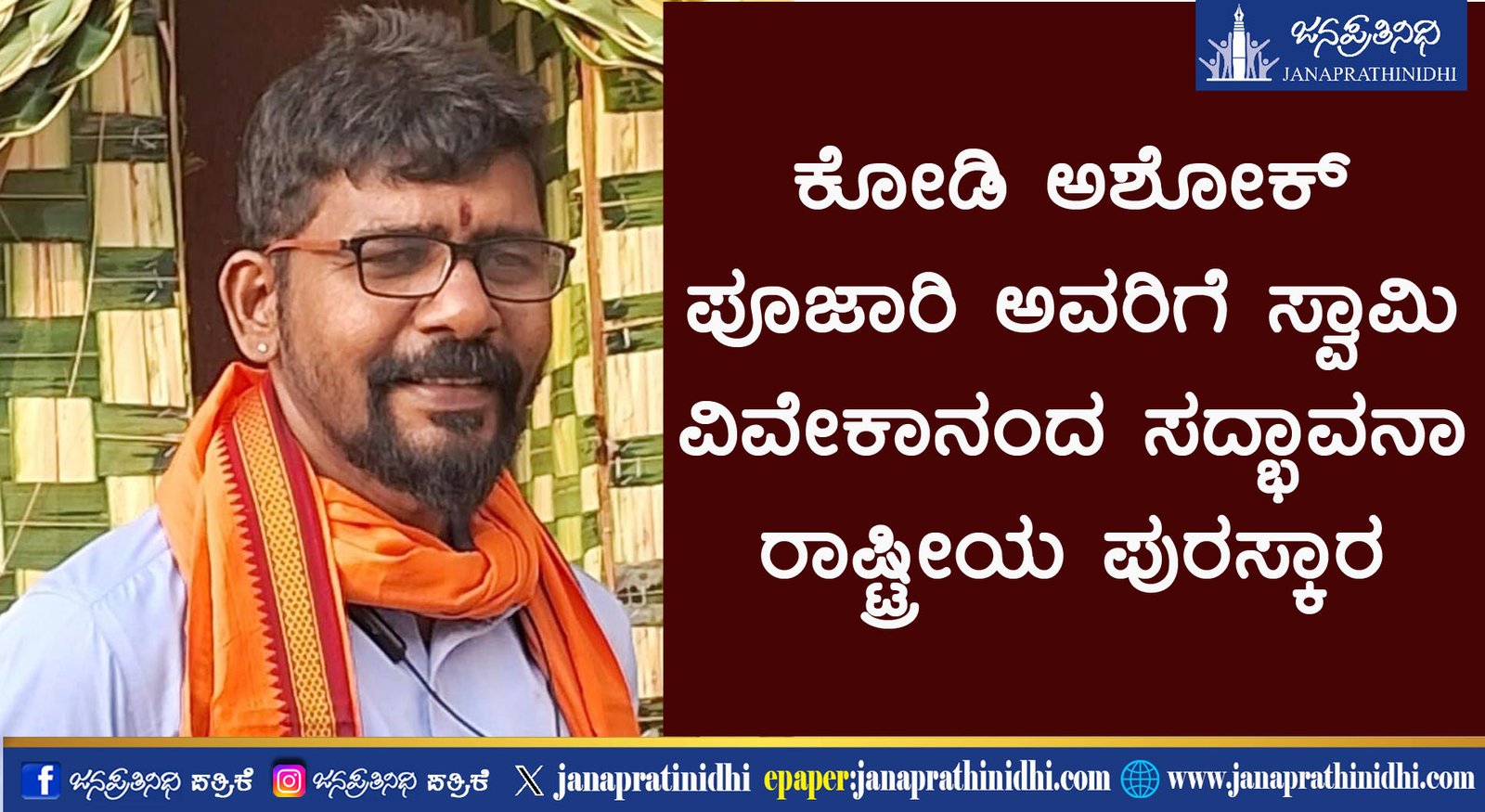 ಕೋಡಿ ಅಶೋಕ್ ಪೂಜಾರಿ ಅವರಿಗೆ ಸ್ವಾಮಿ ವಿವೇಕಾನಂದ ಸದ್ಭಾವನಾ ರಾಷ್ಟ್ರೀಯ ಪುರಸ್ಕಾರ