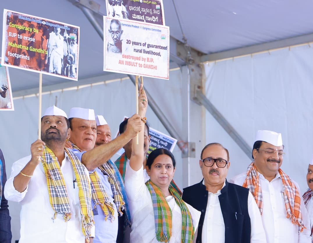 ಫ್ರೀಡಂ ಪಾರ್ಕ್ ನಲ್ಲಿ ಕೆ.ಪಿ.ಸಿ.ಸಿ ವತಿಯಿಂದ ಮಂಗಳವಾರ ನಡೆದ ” ನರೇಗಾ ಬಚಾವ್ ಸಂಗ್ರಾಮ್” ಆಂದೋಲನದ ಅಡಿಯಲ್ಲಿ ಬೃಹತ್‌ ಪ್ರತಿಭಟನೆ ಹಾಗೂ ರಾಜಭವನ್ ಚಲೋ ಕಾರ್ಯಕ್ರಮದಲ್ಲಿ ಮಾತನಾಡಿದ ಸಚಿವರು, ಕಾಂಗ್ರೆಸ್ ನೇತೃತ್ವದ ಕೇಂದ್ರ ಸರ್ಕಾರಗಳು ಗ್ರಾಮ ಪಂಚಾಯತಿಗೆ ಶಕ್ತಿ ನೀಡಿದ್ದವು, ಆದರೆ ಇಂದು ಅದನ್ನು ಕಸಿದುಕೊಳ್ಳಲಾಗುತ್ತಿದೆ ಎಂದರು.