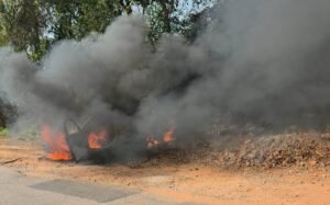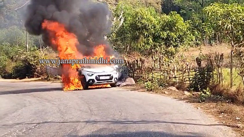 ಚಿತ್ತೂರು ಸಮೀಪ ಸುಟ್ಟು ಭಸ್ಮವಾದ ಕಾರು| ಕಾರಿನಲ್ಲಿದ್ದವರು ಅದೃಷ್ಟವಶಾತ್ ಪಾರು