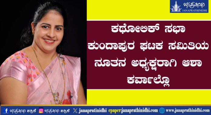ಕಥೋಲಿಕ್ ಸಭಾ ಕುಂದಾಪುರ ಘಟಕ ಸಮಿತಿಯ ನೂತನ ಅಧ್ಯಕ್ಷರಾಗಿ ಆಶಾ ಕರ್ವಾಲ್ಲೊ ಆಯ್ಕೆ