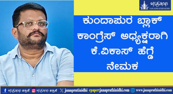 ಕುಂದಾಪುರ ಬ್ಲಾಕ್ ಕಾಂಗ್ರೆಸ್ ಅಧ್ಯಕ್ಷರಾಗಿ ಕೆ.ವಿಕಾಸ್ ಹೆಗ್ಡೆ ನೇಮಕ
