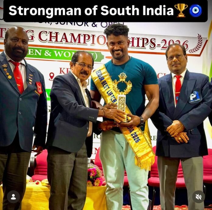 ಬೆಂಗಳೂರು: 2026ರ ಮಾರ್ಚ್ 7 ಮತ್ತು 8ರಂದು ಬೆಂಗಳೂರು ಆನಂದ್ ರಾವ್ ವೃತ್ತದ, ರೇಸ್ ಕೋರ್ಸ್ ಕ್ರಾಸ್ ರೋಡ್‍ನಲ್ಲಿರುವ ಕೆಇಬಿ ಇಂಜಿನಿಯರ್ಸ್ ಅಸೋಸಿಯೇಷನ್ ಸಿಲ್ವರ್ ಜುಬಿಲಿ ಭವನದಲ್ಲಿ ನಡೆದ ದಕ್ಷಿಣ ಭಾರತ ಪವರ್ ಲಿಫ್ಟಿಂಗ್ ಚಾಂಪಿಯನ್ ಶಿಪ್ 2025-26ರಲ್ಲಿ ಬೆಂಗಳೂರಿನ ಜೆಪಿ ನಗರದ ಬಾಲಾರ್ಕ ಫಿಟ್ನೆಸ್ ನ ವಿಶ್ವನಾಥ್ ಭಾಸ್ಕರ್ ಇವರು 870ಕೆಜಿ ಭಾರವನ್ನು 105ಕೆಜಿ ಸೀನಿಯರ್ ವಿಭಾಗದಲ್ಲಿ ಎತ್ತುವುದರ ಮೂಲಕ ಚಿನ್ನದ ಪದಕ ಪಡೆದಿದ್ದಾರೆ. ಅಲ್ಲದೆ ಸ್ಟ್ರಾಂಗ್ ಮ್ಯಾನ್ ಸೌತ್ ಇಂಡಿಯಾ ಟೈಟಲ್ ಕೂಡ ತಮ್ಮದಾಗಿಸಿಕೊಂಡಿದ್ದಾರೆ.