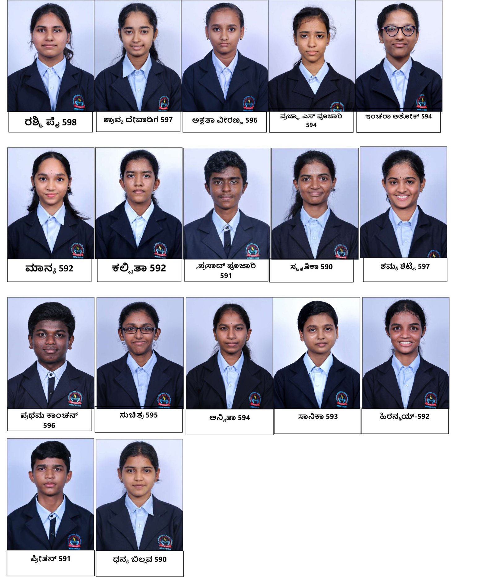 ವಿಜ್ಞಾನ ವಿಭಾಗದಲ್ಲಿ – ರಶ್ಮಿ ಪೈ 598, ಶ್ರಾವ್ಯ ದೇವಾಡಿಗ 597,ಅಕ್ಷತಾ ವೀರಣ್ಣ 596,ಪ್ರಜ್ಞಾ ಎಸ್ ಪೂಜಾರಿ 594,ಇಂಚರಾ ಅಶೋಕ್ 594,ಮಾನ್ಯ 592,ಪ್ರಸಾದ್ ಪೂಜಾರಿ 591,ಸ್ಮೃತಿಕಾ 590,ಧನ್ಯ ಬಿಲ್ಲವ 590