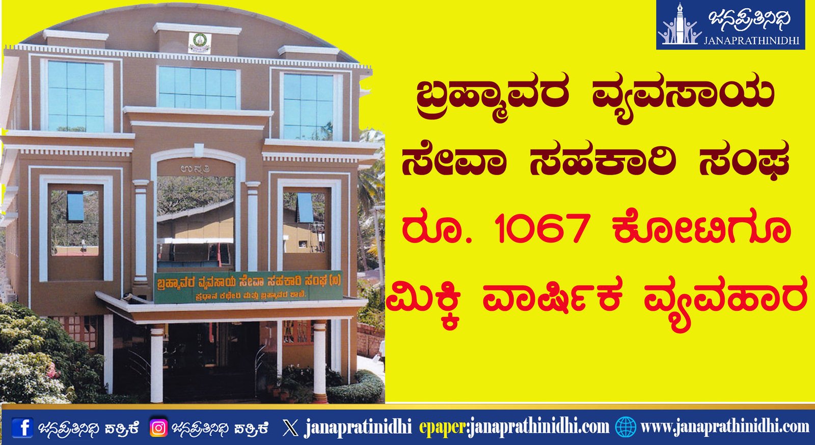 ಬ್ರಹ್ಮಾವರ : ಬ್ರಹ್ಮಾವರ ವ್ಯವಸಾಯ ಸೇವಾ ಸಹಕಾರಿ ಸಂಘವು 2025-2026ನೇ ಸಾಲಿನಲ್ಲಿ 1067.00 ಕೋಟಿ ರೂ ವ್ಯವಹಾರ ನಡೆಸಿದೆ. ಸಂಘವು 31-03-2026ಕ್ಕೆ 6.16 ಕೋಟಿ ರೂ.ಗಳ ಪಾಲು ಬಂಡವಾಳ ಹೊಂದಿದೆ. ರೂ. 244.76 ಕೋಟಿಗೂ ಮಿಕ್ಕಿ ಠೇವಣಿ ಸಂಗ್ರಹಿಸಿ ರೂ. 182.68 ಕೋಟಿಗೂ ಮಿಕ್ಕಿ ಸಾಲ ನೀಡಿದೆ. ಸುಮಾರು ಶೇ. 99.30ರಷ್ಟು ಸಾಲ ಮರುಪಾವತಿಯಾಗಿದೆ. 31-03-26 ಕ್ಕೆ ಸಂಘವು ರೂ. 30.99 ಕೋಟಿ ವಿವಿಧ ನಿಧಿಗಳನ್ನು ಹೊಂದಿದ್ದು, ರೂ. 105.83 ಕೋಟಿ ವಿವಿಧ ಬ್ಯಾಂಕ್‍ಗಳಲ್ಲಿ ವಿನಿಯೋಗಿಸಿದೆ. ಸುಮಾರು ರೂ. 5.00 ಕೋಟಿಯಷ್ಟು ಸ್ಥಿರ ಚರ ಆಸ್ತಿಯನ್ನು ಸಂಘವು ಹೊಂದಿದೆ. ಪ್ರಸಕ್ತ ಆರ್ಥಿಕ ವರ್ಷದಲ್ಲಿ ರೂ. 4.50 ಕೋಟಿಗೂ ಮಿಕ್ಕಿ ಲಾಭ ಗಳಿಸಿದೆ.