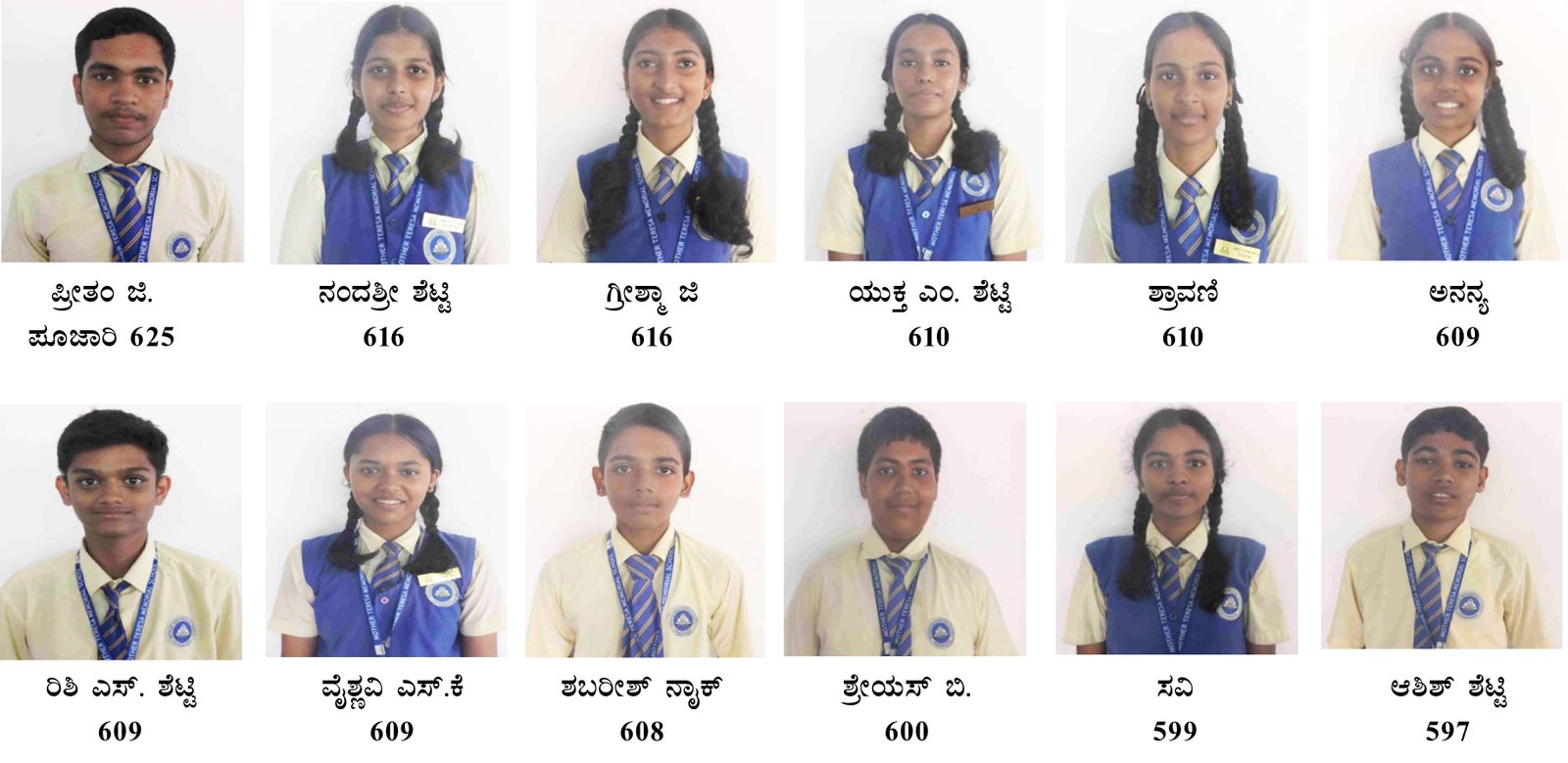 ಪ್ರೀತಮ್ ಜಿ ಪೂಜಾರಿ 625 ಅಂಕಗಳೊಂದಿಗೆ ಶಾಲೆಗೆ ಪ್ರಥಮ ಸ್ಥಾನ ತಂದುಕೊಟ್ಟಿದ್ದು, ರಾಜ್ಯ ಮಟ್ಟದ ಮೊದಲ ರ‍್ಯಾಂಕ್‌ನ್ನು ಗಳಿಸಿ ಶಾಲೆಯ ಕೀರ್ತಿ ಪತಾಕೆಯನ್ನು ಮುಗಿಲೆತ್ತರಕ್ಕೆ ಹಾರಿಸಿದ್ದಾರೆ. ನಂದಶ್ರೀ ಶೆಟ್ಟಿ ಮತ್ತು ಗ್ರೀಷ್ಮಾ 616 ಅಂಕಗಳೊದಿಗೆ ದ್ವಿತೀಯ ಸ್ಥಾನ ಪಡೆದಿದ್ದು, ಯುಕ್ತ ಎಂ ಶೆಟ್ಟಿ ಶರ್ವಾಣಿ ಉಪ್ಪೂರ್ 610 ಅಂಕಗಳೊಂದಿಗೆ ತೃತೀಯ ಸ್ಥಾನ ಗಳಿಸಿದ್ದಾರೆ.