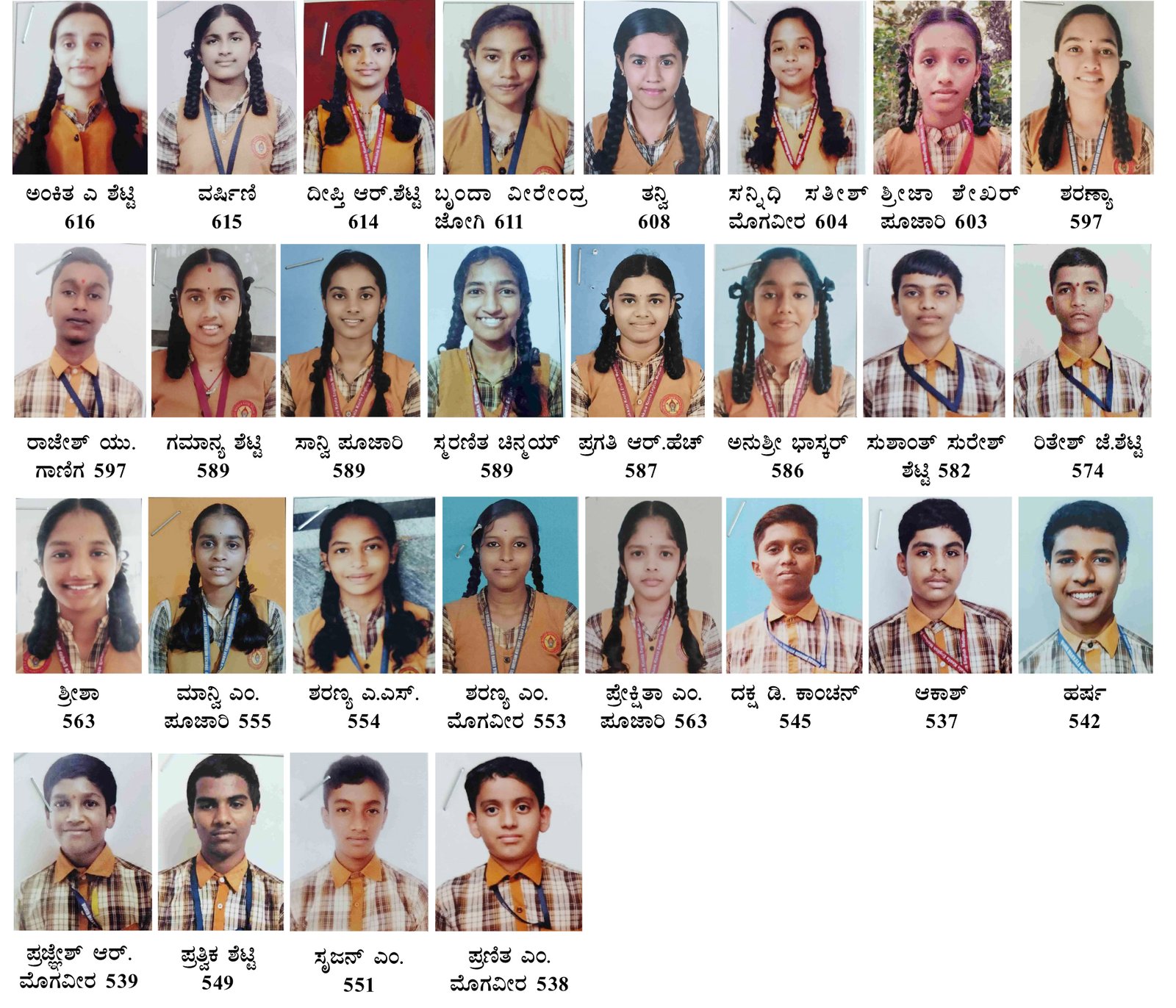 ಅಂಕಿತಾ – 616 ಅಂಕ ಪಡೆಯುವುದರ ಮೂಲಕ ರಾಜ್ಯಕ್ಕೆ ಹತ್ತನೇ ರ‍್ಯಾಂಕ್ , ಸಂಸ್ಥೆಗೆ ಪ್ರಥಮ ಸ್ಥಾನ ಅಲ್ಲದೆ ವರ್ಷಿಣಿ 615 ಅಂಕ, ದೀಪ್ತಿ – 614 ಅಂಕ, ಬೃಂದಾ – 611, ತನ್ವಿ 608, ಸನ್ನಿಧಿ – 604, ಶ್ರೀಜಾ – 603 ಅಂಕಗಳನ್ನು ಗಳಿಸಿದ್ದಾರೆ.
