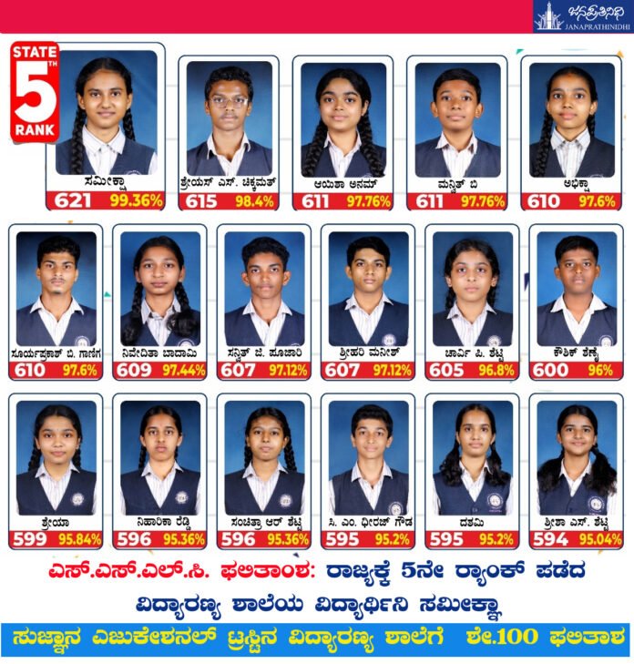 ಕುಂದಾಪುರ: ಕರ್ನಾಟಕ ಶಾಲಾ ಪರೀಕ್ಷೆ ಮತ್ತು ಮೌಲ್ಯನಿರ್ಣಯ ಮಂಡಳಿಯು ಪ್ರಕಟಿಸಿದ ೨೦೨೫-೨೬ನೇ ಸಾಲಿನ ಎಸ್.ಎಸ್.ಎಲ್.ಸಿ. ಪರೀಕ್ಷಾ ಫಲಿತಾಂಶದಲ್ಲಿ ಕುಂದಾಪುರದ ಯಡಾಡಿ-ಮತ್ಯಾಡಿಯ ಸುಜ್ಞಾನ ಎಜುಕೇಶನಲ್ ಟ್ರಸ್ಟ್ ನ ವಿದ್ಯಾರಣ್ಯ ಆಂಗ್ಲ ಮಾಧ್ಯಮ ಶಾಲೆಯು ಅಭೂತಪೂರ್ವ ಸಾಧನೆ ಮಾಡಿದೆ. ಶಾಲೆಯ ವಿದ್ಯಾರ್ಥಿನಿ ಸಮೀಕ್ಷಾ ಒಟ್ಟು 625 ಅಂಕಗಳಿಗೆ 621ಅಂಕಗಳನ್ನು ಗಳಿಸುವ ಮೂಲಕ ರಾಜ್ಯಮಟ್ಟದಲ್ಲಿ 5ನೇ Rank ಪಡೆದಿದ್ದಾರೆ.