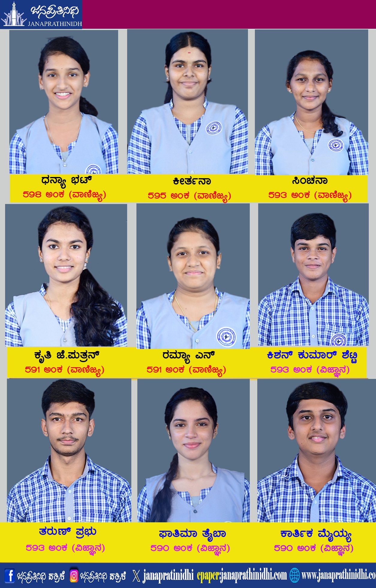 ವಿಜ್ಞಾನ ವಿಭಾಗದಲ್ಲಿ ವಿದ್ಯಾರ್ಥಿ ತರುಣ್ ಪ್ರಭು ಮತ್ತು ಕಿಶನ್ ಕುಮಾರ್ ಶೆಟ್ಟಿ (593) 7ನೇ Rank, ಫಾತಿಮಾ ತೈಬಾ ಮತ್ತು ಕಾರ್ತಿಕ್ ಮೈಯ್ಯ (590) 10ನೇ Rank ಪಡೆದಿದ್ದಾರೆ.