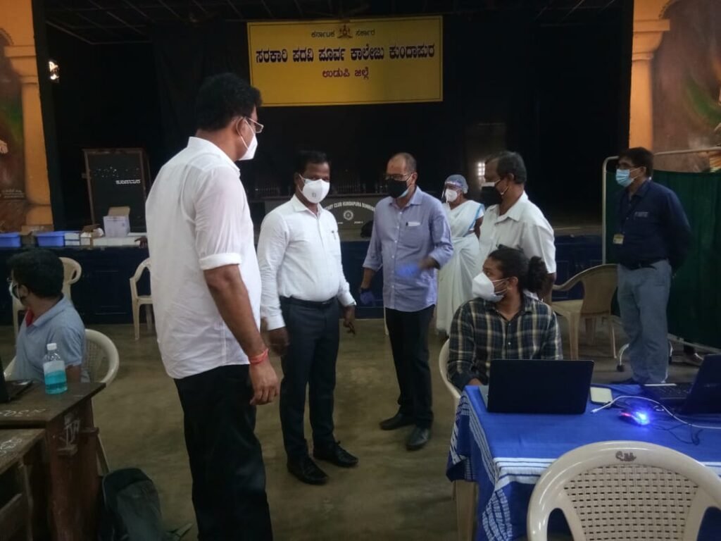 ಕುಂದಾಪುರ,ಮೇ.10: ಕುಂದಾಪುರದ ಬೋರ್ಡ್ ಹೈಸ್ಕೂಲ್‌ನ ಕಲಾಮಂದಿರದಲ್ಲಿ 18 ವರ್ಷ ವಯಸ್ಸಿನ ನಂತರದವರು ಆನ್‌ಲೈನ್ ಮೂಲಕ ನೋಂದಣಿ ಮಾಡಿಕೊಂಡು ಸಂದೇಶ ತಲುಪಿದ ನೂರು ಜನರಿಗೆ ಮೊದಲ ಹಂತದ ಕೋವಿಶೀಲ್ಡ್ ಲಸಿಕೆಯನ್ನು ನೀಡಲಾಯಿತು.